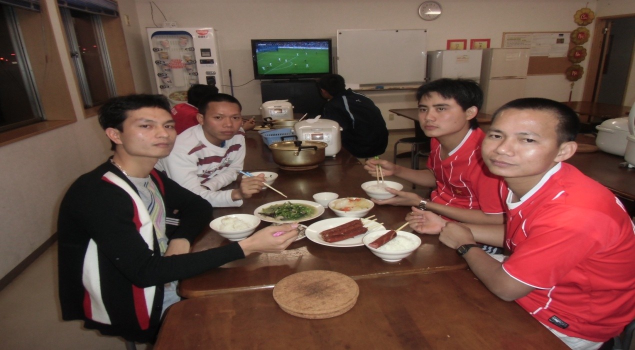 Sau khi kết thúc một ngày làm việc tại xưởng, tôi lại được xe của Công ty đưa về ký túc xá. Tại đây, từng phòng chúng tôi cùng nhau nấu bữa cơm chung. Chúng tôi thường đi siêu thị gần ký túc xá để mua thực phẩm và các vật dụng cần thiết cho bản thân. Các anh em trong phòng chia nhau đi chợ, khoảng 2 lần mỗi tuần. Chúng tôi luôn để ý tới thông tin giảm giá trên tờ rơi dán ở siêu thị để mua. Bằng cách này, chúng tôi tiết kiệm được tương đối nhiều chi phí sinh hoạt. Ở Nhật Bản, không phải thực phẩm giảm giá là kém chất lượng vì người Nhật rất trọng chữ tín nên dù là sản phẩm giảm giá nhưng chất lượng vẫn rất tươi ngon.